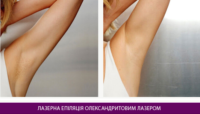 ЛАЗЕРНА ЕПІЛЯЦІЯ ОЛЕКСАНДРИТОВИМ ЛАЗЕРОМЛазерна епіляція олександритовим лазером ідеально підходить для пацієнтів з темним волоссям та світлою шкірою. У порівнянні з діодними моделями, забезпечує швидку та безболісну епіляцію. Суть цього методу лазерної епіляції полягає у вибірковому впливі лазерного променя довжиною 755 нм на пігмент меланін у волосяній цибулині, завдяки чому вона необоротно руйнується. Діаметр світлової плями 18 мм (найбільший з усіх, які виробляють наявні лазери) забезпечує максимально швидке виконання процедури. А вбудована система охолодження робить її абсолютно безболісною та такою, що не потребує застосування охолоджувальних спреїв і спеціальних кремів. Волосся після процедури зникає миттєво й пацієнт йде з ідеально гладкою шкірою. Оскільки лазерна енергія впливає на волосяні цибулини, що перебувають в активній фазі росту, для цілковитого позбавлення від волосся необхідно здійснити 5–7 сеансів з інтервалом приблизно в 4–6 тижнів. Протипоказання- Епіляцію олександритовим лазером не можна виконувати на засмаглій і темній шкірі